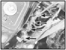 21.32 Left-hand modulator adjuster and pivot bolts (arrowed)